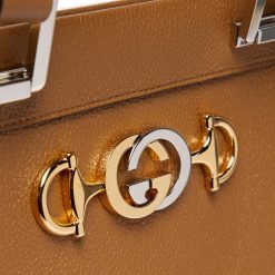 The Zumi bag takes its name from actress and musician Zumi Rosow, a key muse for Alessandro Michele and Gucci’s Pre-AW19 collection – the singer walked the runway with the bag during Milan Fashion Week. It’s crafted in Italy with grained leather, the interlocking GG horsebit feature cast from silver and gold-tone metal, then finished with a detachable shoulder strap and grey leather lining. Channel the house’s more-is-more aesthetic by styling it with a printed midi dress.